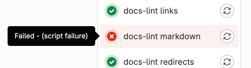 4. From the pipeline graph, next to the job you want to retry, select Run again ({retry}).