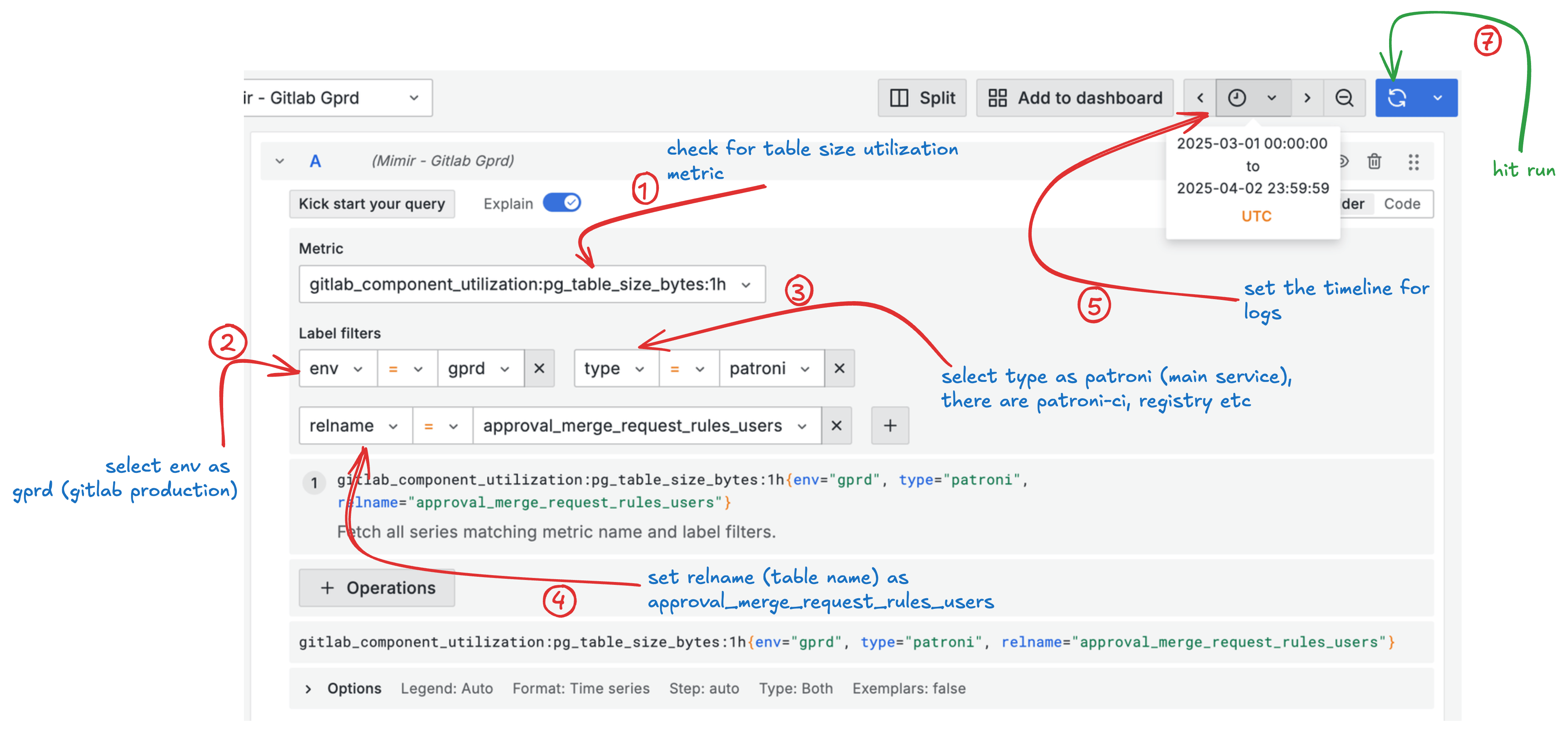 • Metric: gitlab_component_utilization:pg_table_size_bytes:1h.