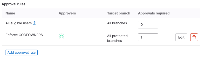 • Your approval rule encourages (in GitLab Free) or requires (in GitLab Premium and GitLab Ultimate) the subject matter experts to review changes.